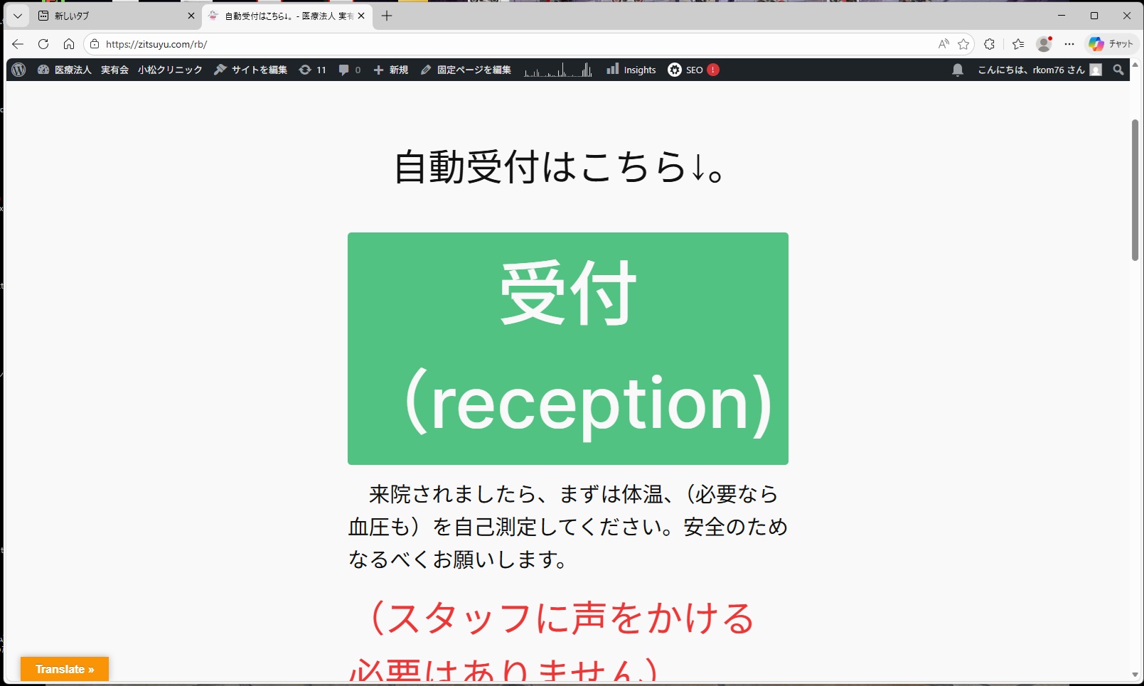 いままではホームページの一番表に自動受付ボタンをおいていましたが、少しわかりにくく、当院に来たことがない方はなんのことかわからなかったかもしれません。受付用のページを別にわけ、わかりやすくしました。
