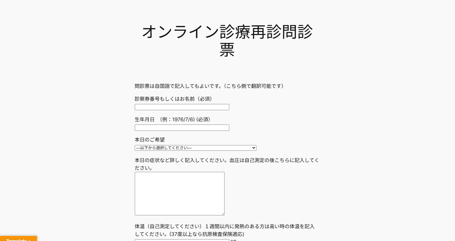 20260211 オンライン診療問診票を作りました。